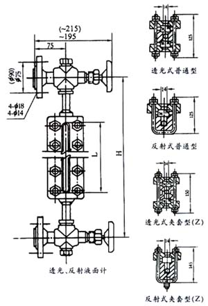 液面計(jì) | BR40-Ⅰ, BR40-Ⅱ, BR40-ⅠZ, BR40-ⅡZ, | L=500、800、1100、1400、1700、2000 | HG5-1366-80 | ①凸面法蘭(B)按HGJ47-91 DN20,PN4.0MPa ②工作壓力:4.0MPa |