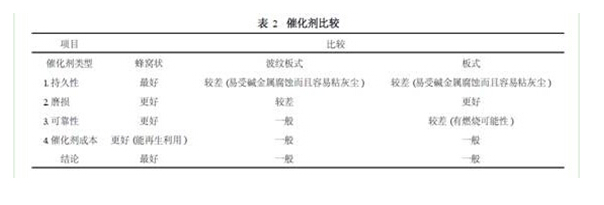 2)同波紋式、板式催化劑相比,蜂窩狀催化劑有如下優(yōu)點(diǎn),如表2所示。